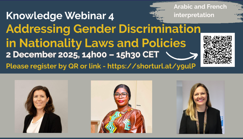 On 2nd December 2025, Catherine Harrington, Manager of the Global Campaign for Equal Nationality Rights, moderated the fourth Global Alliance Webinar on Addressing Gender Discrimination in National Laws and Policies. Opening the event, she reminded participants that over forty-five countries still maintain nationality laws that discriminate based on gender. Twenty-four of these do not permit women to confer nationality on their children on an equal basis with men, making gender-discriminatory laws one of the root causes of statelessness.
